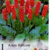 ARUM ITALICUM: Tavasszal és ősszel is ültethető, nyári virágzású növény. Ültetés laza talajba, napos vagy árnyékos helyre. Őszi ültetés esetén az első télen takarja lombbal vagy szalmával a kifagyás ellen.